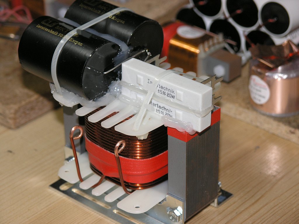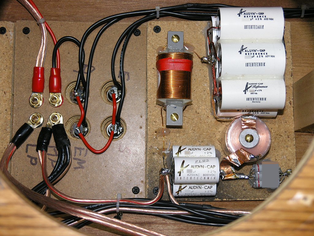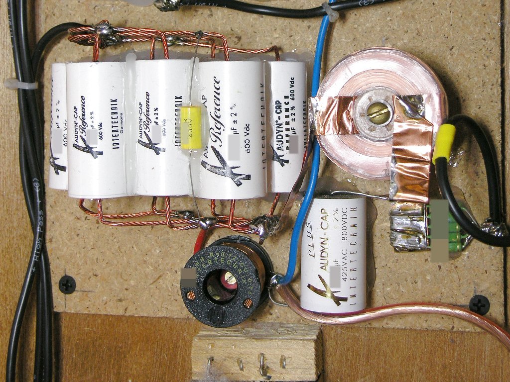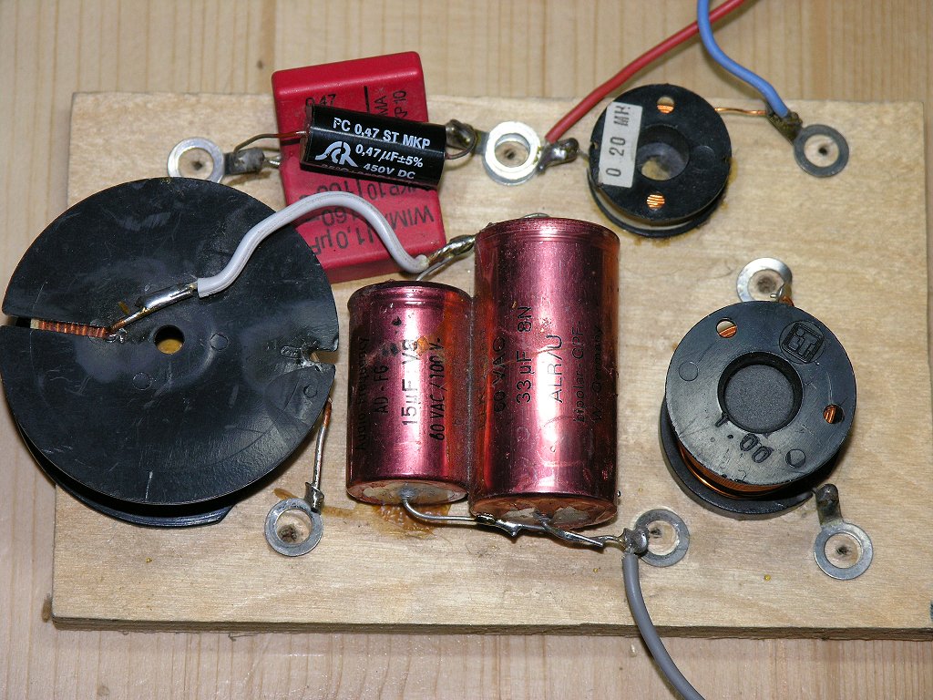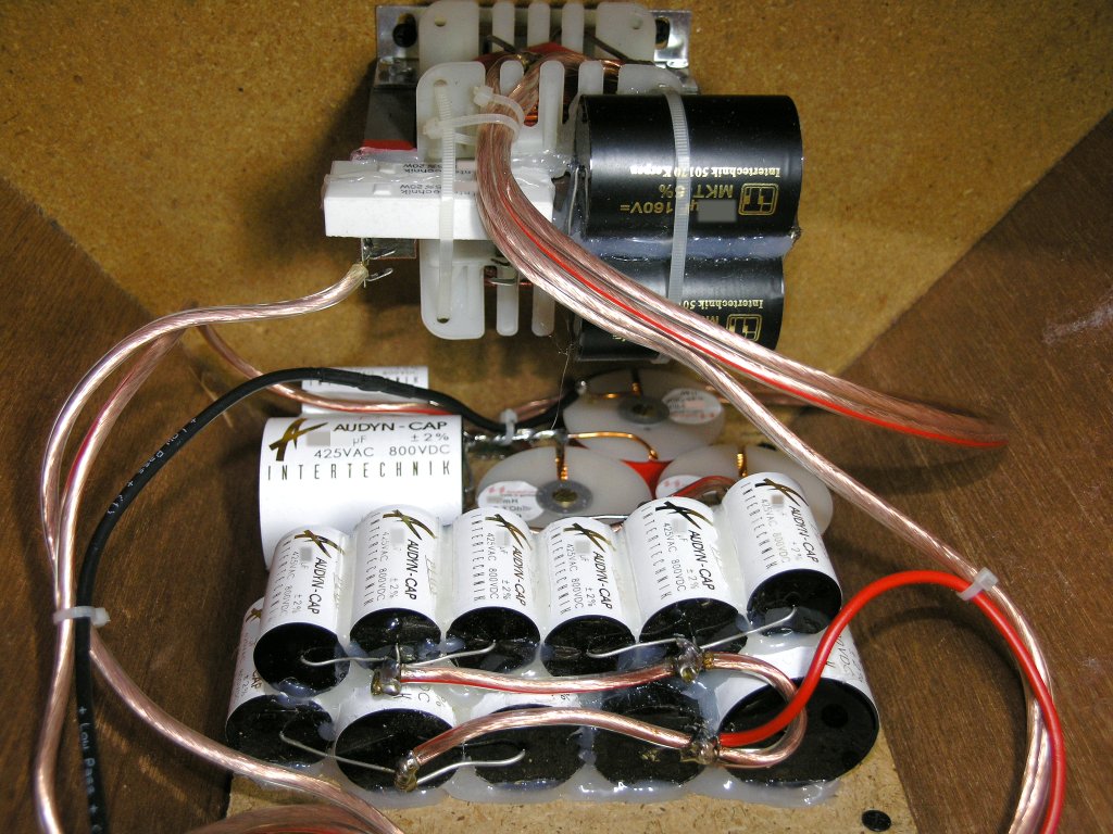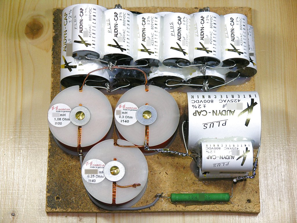 Es sind die für den jeweiligen Zweck besten Bauteile zum Einsatz gekommen, die es für Geld gibt. Jedes einzelne Bauteil für sich wurde hier nach seinem Einsatz auf optimale Eignung beleuchtet und danach ausgewählt. Sämtliche Bauteile wurden dann so zusammen gestellt, wie es für den jeweiligen Einsatz und das Ohr am besten ist. Der Preis hat hier keine Rolle mehr gespielt. Wichtig war hier nur eine extreme Langzeitkonstanz und ein wirklich perfekter Klang. Und diese Langzeitkonstanz beträgt hier immerhin mehrere Generationen. Die Enkelkinder des Besitzers dieser Boxen werden das Ende der Weiche nicht mehr erleben, wenn man von normalen Betriebsbedingungen ausgeht.
