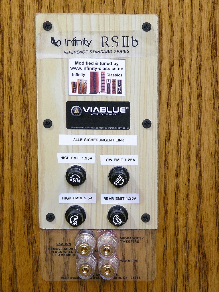 Infinity hatte damals bei der Entwicklung dieser Boxen ein 6-Wege System aufgebaut, was der letzte "Tuner" offenbar als Fehlentwicklung betrachtete, so dass er dann dieses neue "3-Wege-System" daraus gemacht hat. Damit stellt er offensichtlich die Fähigkeiten der damaligen Entwickler von Infinity vollends in Frage! Ich meinerseits stelle nun die Fähigkeiten dieses "Tuners" in Frage, weil ich ganz sicher eher den Fähigkeiten der Infinity-Entwickler vertraue.