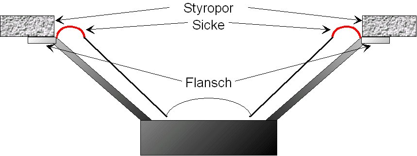 Styropor (gibt's in jedem Baumarkt) zwischen den Bässen angebracht, dessen eigener Innendurchmesser nur
